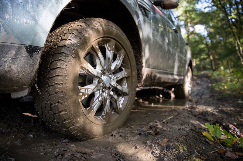 Alternatively, try to gently move the steering wheel from side to side when your car is stuck in mud. This can give the tire sidewalls a chance to get a foothold.